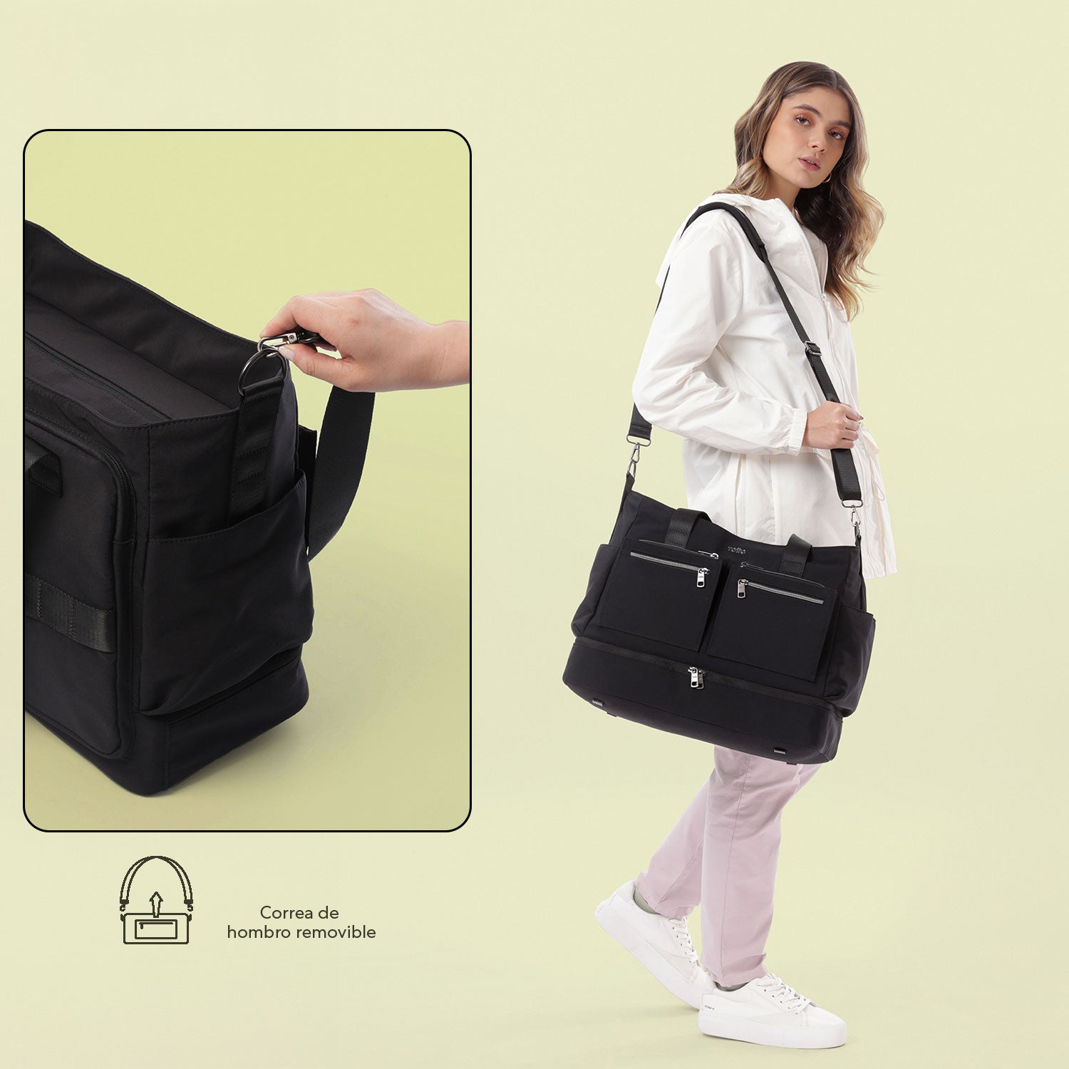 Mantenha tudo organizado com a Bolsa Transversal TOTTO DUFFLE SAHARA, ideal para o trabalho, academia ou viagens. Projetada para mulheres que buscam espaço e organização, ela possui um compartimento acolchoado para laptop de 16", organizador interno, bolsos com zíper e alça roll-top. Sua alça removível e acolchoada proporciona conforto ao carregá-la no ombro ou transversalmente ao corpo. Feita de poliéster resistente, ela é prática e durável. Adquira já!