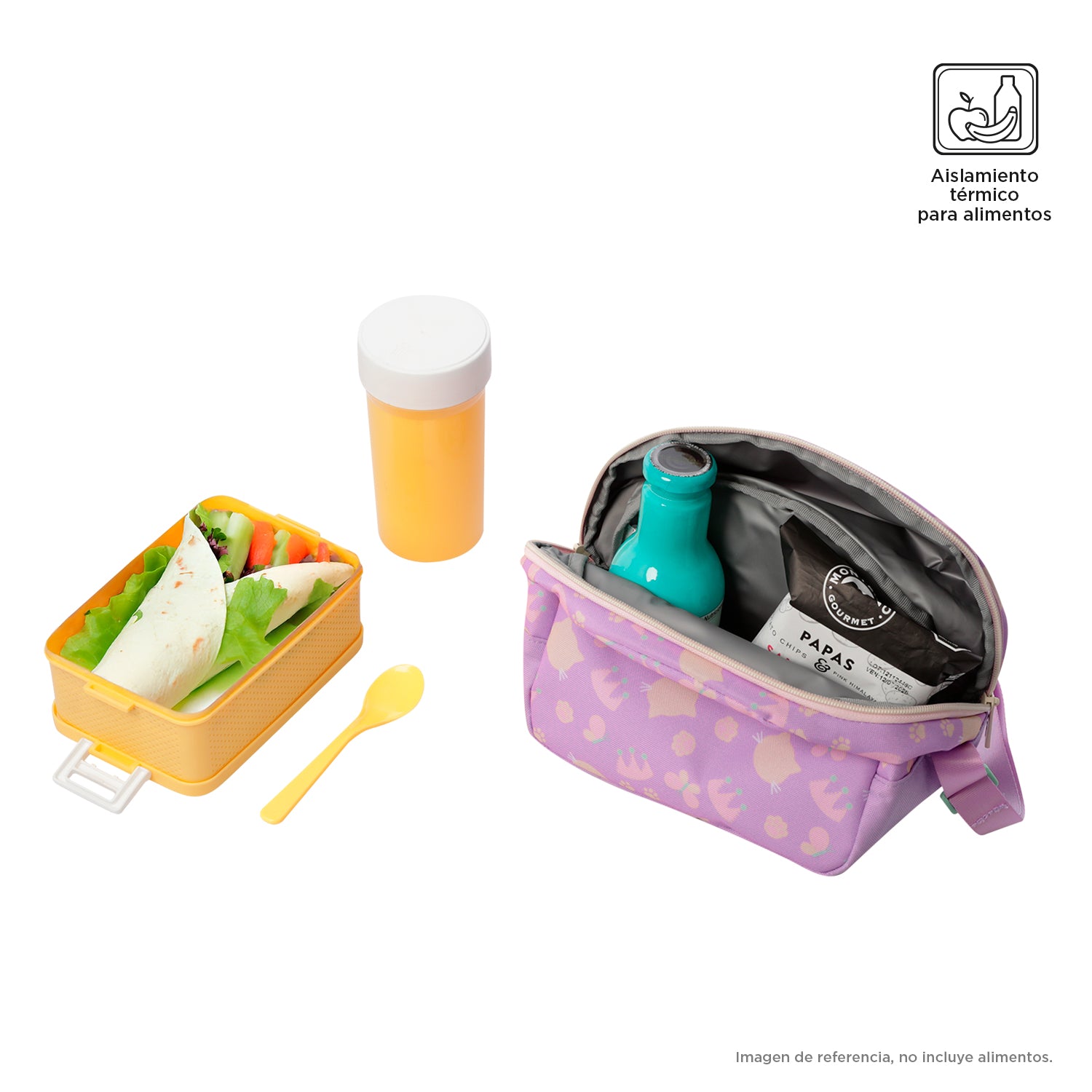 Torne a hora do almoço e lanche mais divertida com a lancheira da coleção Queen Cat! Esta lancheira isolada é espaçosa e prática, perfeita para manter os alimentos frescos e seguros. Seu design repelente de líquidos e fácil de limpar o torna ideal para o uso diário. Inclui compartimento principal com zíper duplo, bolsos laterais para garrafas e faixa para prender na mochila. Conforto para sua filha com essa lancheira!