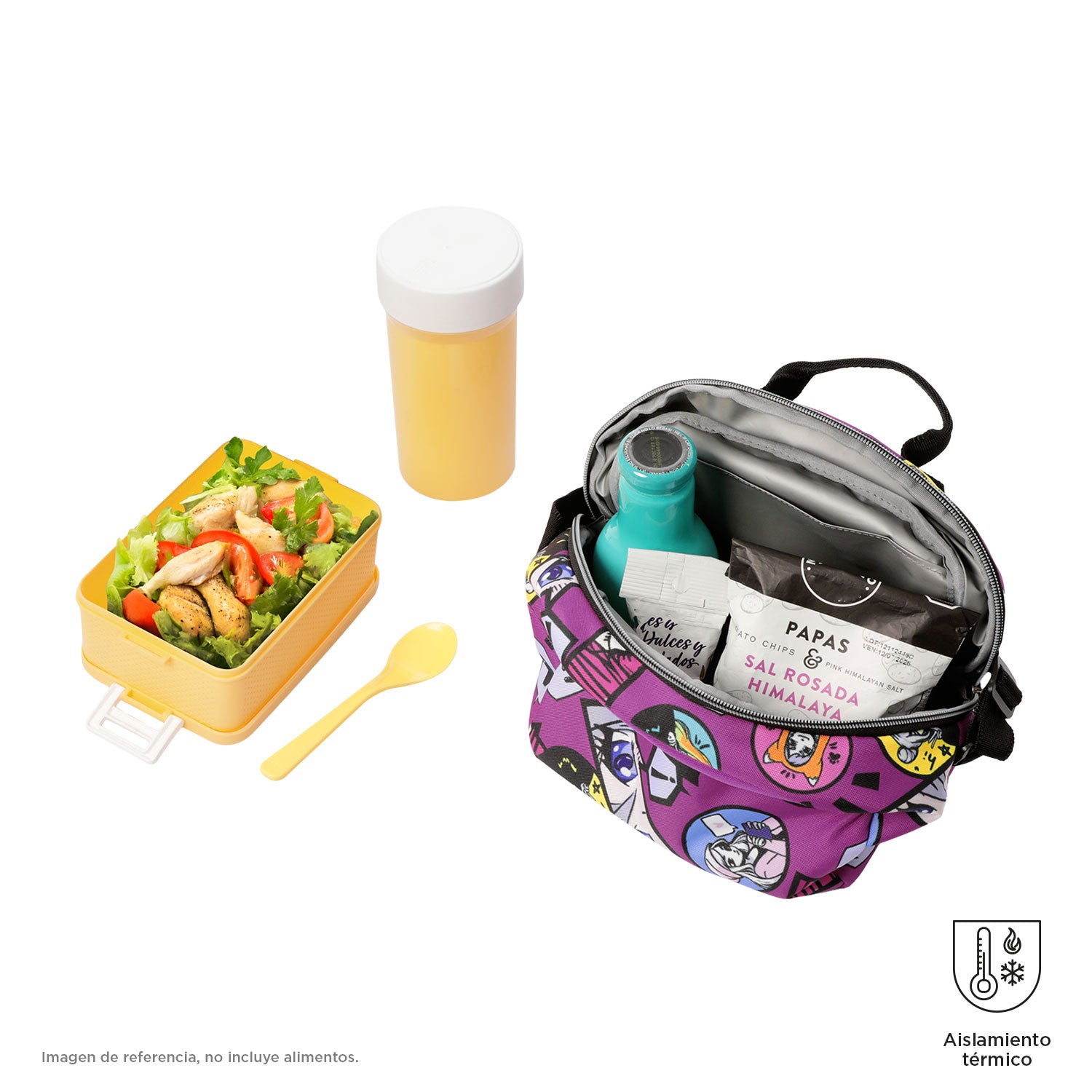 Organize seu dia com a lancheira modelo Borrador! Projetada com isolamento térmico para manter seus alimentos frescos por até 5 horas, ela é repelente a líquidos e fácil de limpar. Revestimento interno em PVC, lavável, secagem rápida e não detém odores. Inclui um elástico interno para transportar garrafas com segurança. Possui também uma pega e alça ajustável e uma alça traseira para prender em mochilas com rodinhas.