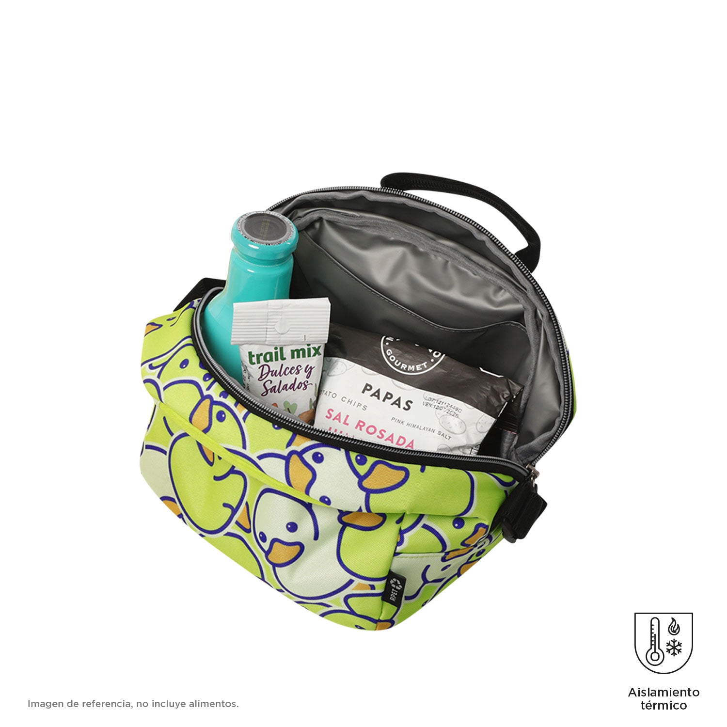 Organize seu dia com a lancheira modelo Borrador! Projetada com isolamento térmico para manter seus alimentos frescos por até 5 horas, ela é repelente a líquidos e fácil de limpar. Revestimento interno em PVC, lavável, secagem rápida e não detém odores. Inclui um elástico interno para transportar garrafas com segurança. Possui também uma pega e alça ajustável e uma alça traseira para prender em mochilas com rodinhas.