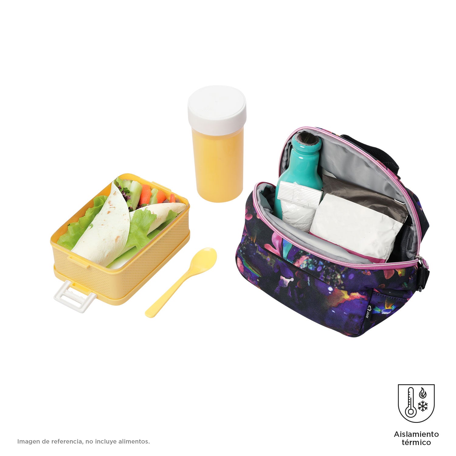 Organize seu dia com a lancheira modelo Borrador! Projetada com isolamento térmico para manter seus alimentos frescos por até 5 horas, ela é repelente a líquidos e fácil de limpar. Revestimento interno em PVC, lavável, secagem rápida e não detém odores. Inclui um elástico interno para transportar garrafas com segurança. Possui também uma pega e alça ajustável e uma alça traseira para prender em mochilas com rodinhas.