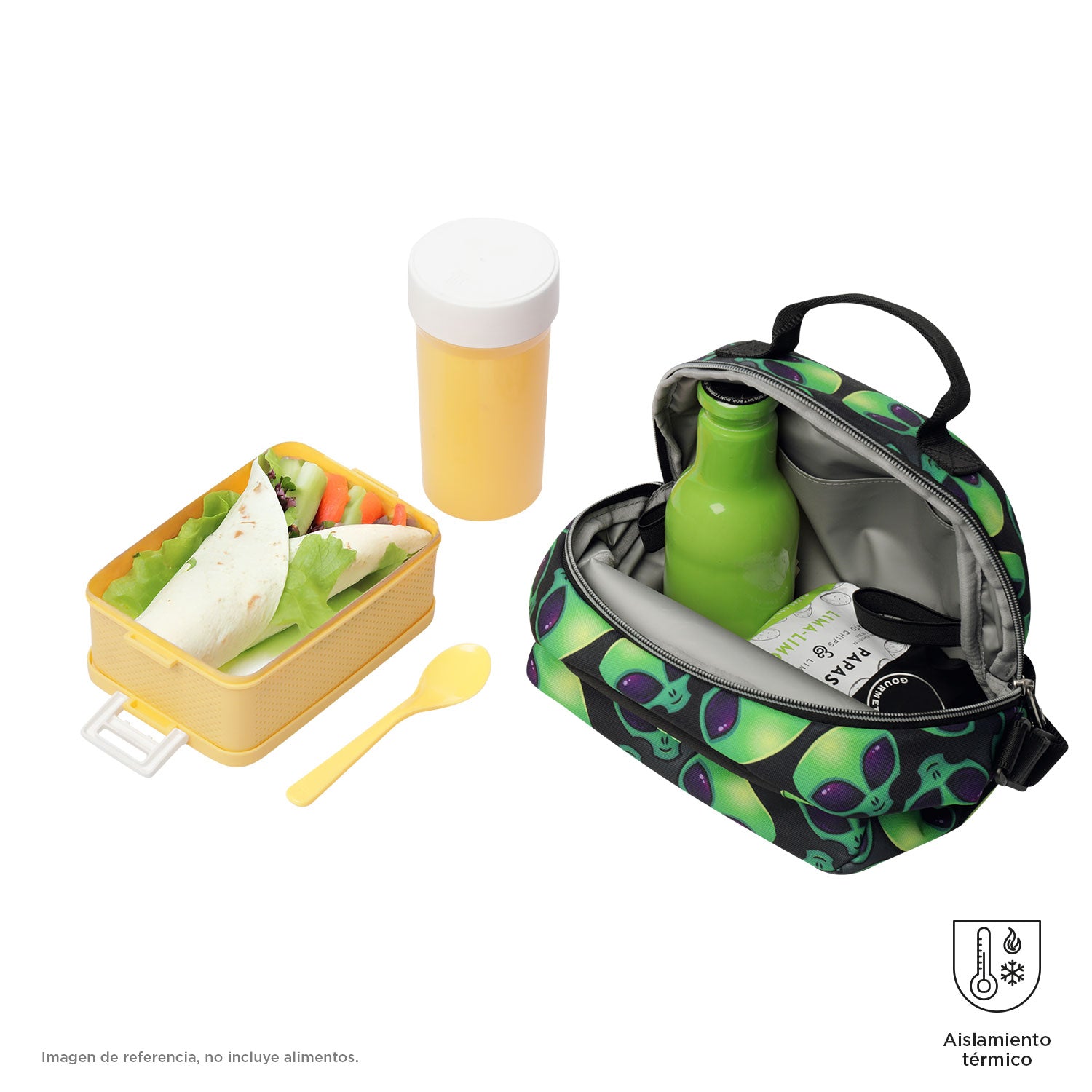 Organize seu dia com a lancheira modelo Borrador! Projetada com isolamento térmico para manter seus alimentos frescos por até 5 horas, ela é repelente a líquidos e fácil de limpar. Revestimento interno em PVC, lavável, secagem rápida e não detém odores. Inclui um elástico interno para transportar garrafas com segurança. Possui também uma pega e alça ajustável e uma alça traseira para prender em mochilas com rodinhas.