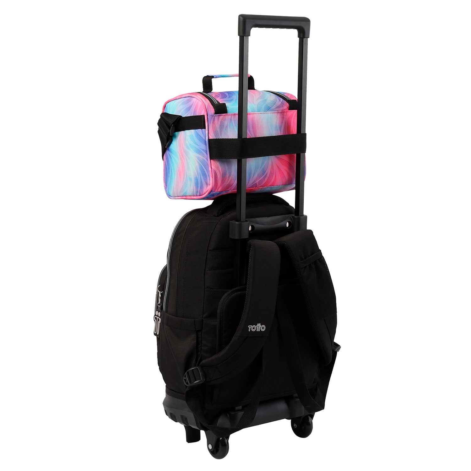 Descubra a funcionalidade da lancheira modelo Pizarra. Projetada para manter a temperatura dos seus alimentos por até 5 horas graças ao seu isolamento térmico. Além disso, é repelente a líquidos e fácil de limpar. Revestimento interno em PVC, lavável, secagem rápida e não detém odores. Equipada com um bolso interno de malha, um bolso extra, com pega e alça ajustável e uma alça traseira para prender em mochilas com rodinhas, ela é ideal para organizar seus pertences.