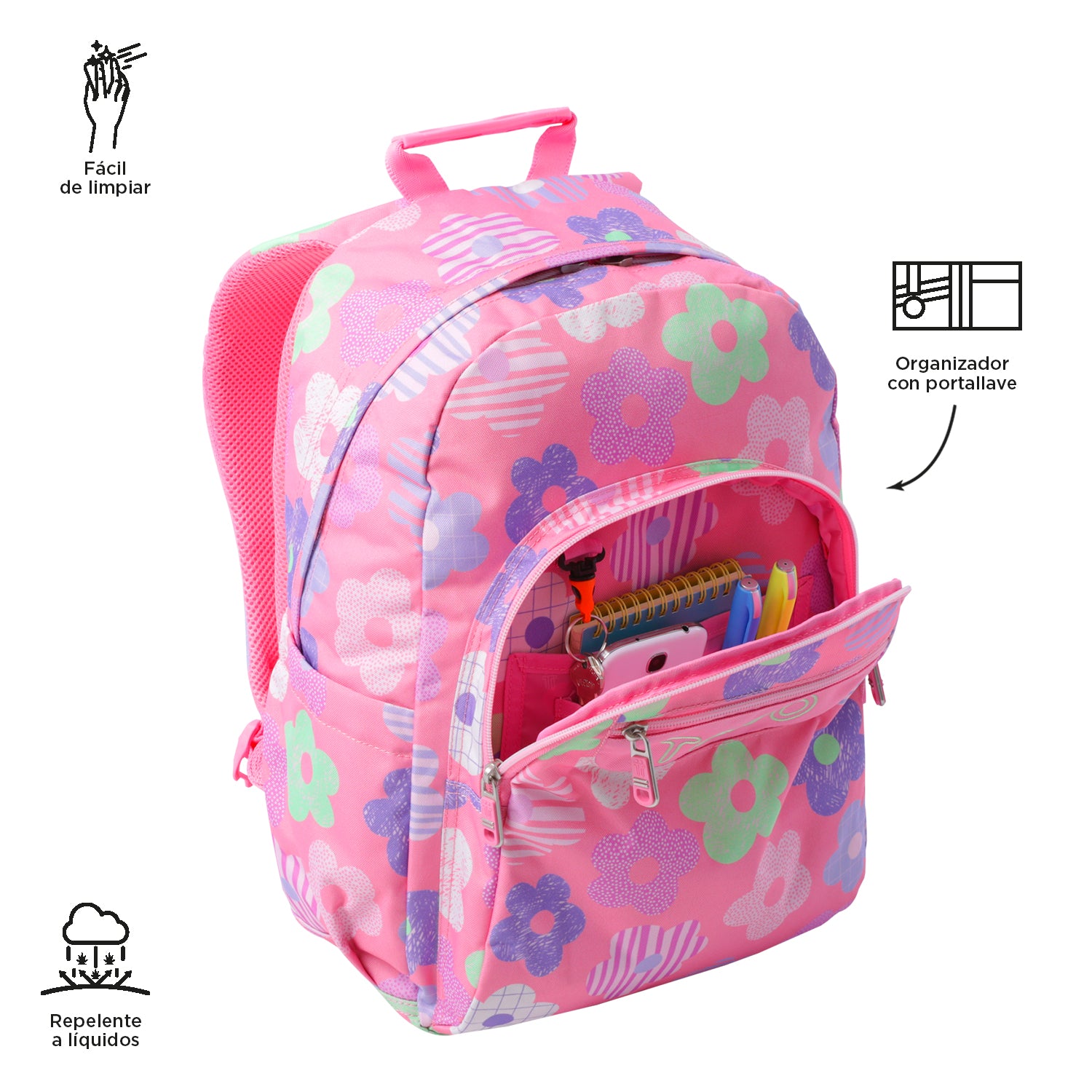 Procurava uma mochila leve, prática e fácil de combinar? A mochila escolar Acuarela é perfeita para você. Possui compartimento principal com fechamento em zíper, porta PC de 14’, fechos deslizante duplo, dois bolsos frontais de fácil acesso e alças ajustáveis para manter o conforto nas costas, produzida em material eco-friendly RPET. A mochila escolar Acuarela é prática, ergonômica e muito fácil de limpar. Leve para qualquer lugar! O que você está esperando para ter a sua?