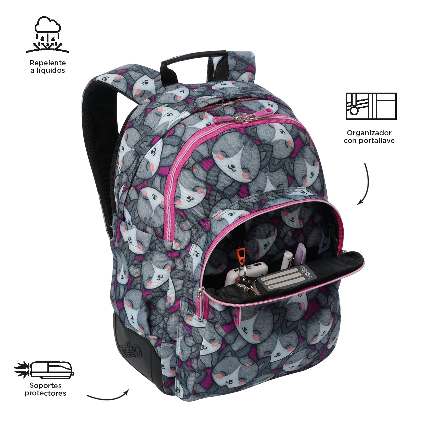 A mochila escolar Rayol é feito de lona RPET, feita de garrafas plásticas recicladas, o que o torna uma opção sustentável. Possui dois compartimentos principais e dois compartimentos frontais de acesso rápido, além de um bolso dedicado para um laptop de 14 polegadas em um dos compartimentos principais. Seus bolsos laterais são ideais para carregar uma garrafa ou um guarda-chuva. O reforço de borracha na base e os suportes protetores de PVC garantem durabilidade e resistência ao atrito. Além disso, seu encosto ergonômico em Air Mesh e alças proporcionam conforto superior, enquanto o organizador com porta-chaves mantém tudo em seu lugar. Uma opção completa para o dia a dia na escola!