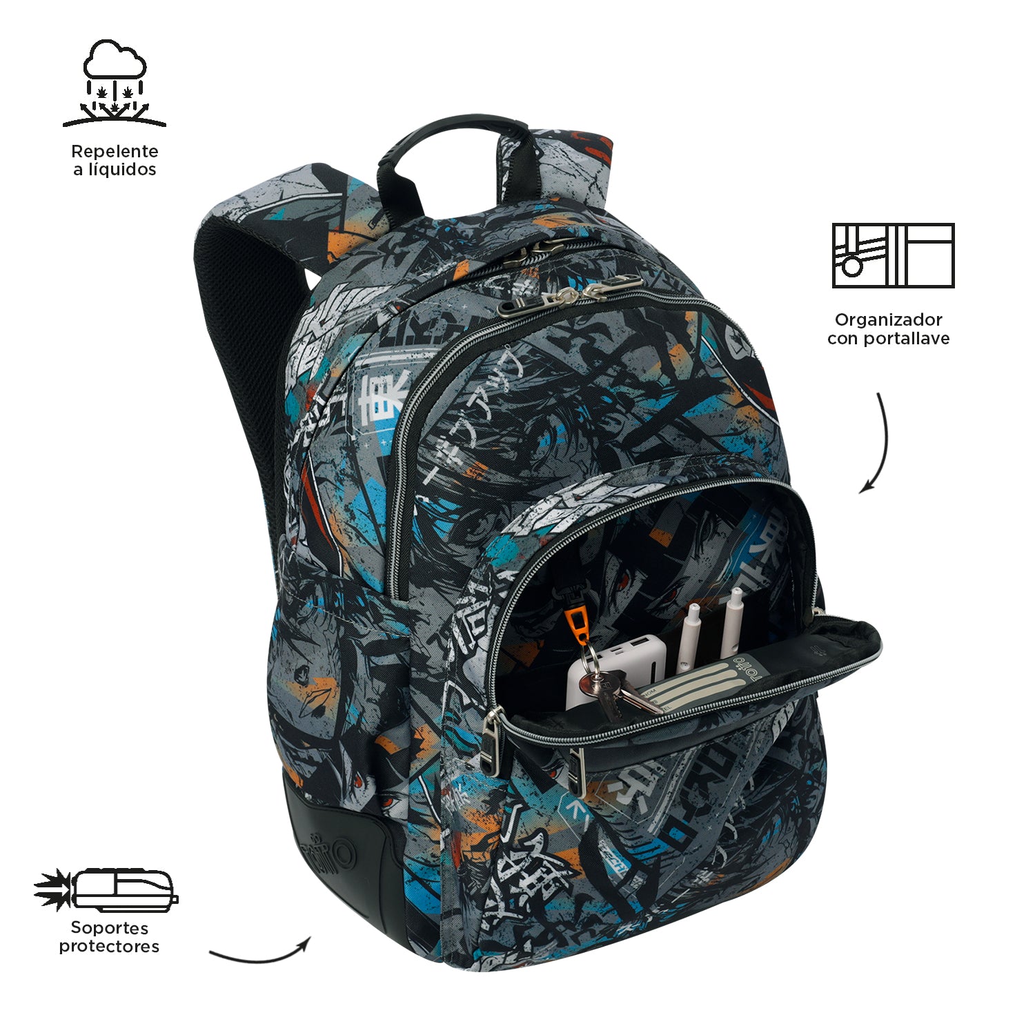A mochila escolar Rayol é feito de lona RPET, feita de garrafas plásticas recicladas, o que o torna uma opção sustentável. Possui dois compartimentos principais e dois compartimentos frontais de acesso rápido, além de um bolso dedicado para um laptop de 14 polegadas em um dos compartimentos principais. Seus bolsos laterais são ideais para carregar uma garrafa ou um guarda-chuva. O reforço de borracha na base e os suportes protetores de PVC garantem durabilidade e resistência ao atrito. Além disso, seu encosto ergonômico em Air Mesh e alças proporcionam conforto superior, enquanto o organizador com porta-chaves mantém tudo em seu lugar. Uma opção completa para o dia a dia na escola!