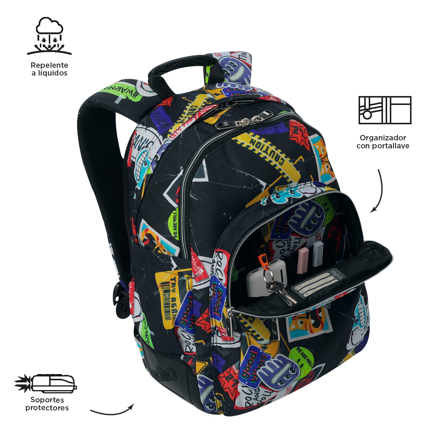 A mochila escolar Rayol é feito de lona RPET, feita de garrafas plásticas recicladas, o que o torna uma opção sustentável. Possui dois compartimentos principais e dois compartimentos frontais de acesso rápido, além de um bolso dedicado para um laptop de 14 polegadas em um dos compartimentos principais. Seus bolsos laterais são ideais para carregar uma garrafa ou um guarda-chuva. O reforço de borracha na base e os suportes protetores de PVC garantem durabilidade e resistência ao atrito. Além disso, seu encosto ergonômico em Air Mesh e alças proporcionam conforto superior, enquanto o organizador com porta-chaves mantém tudo em seu lugar. Uma opção completa para o dia a dia na escola!