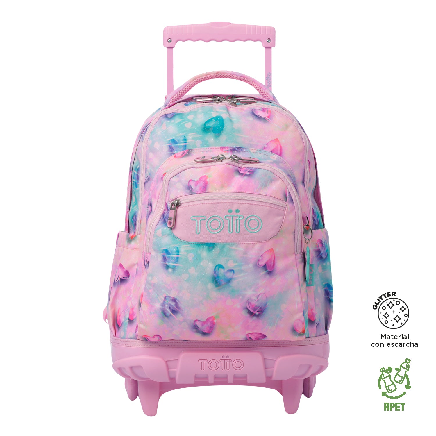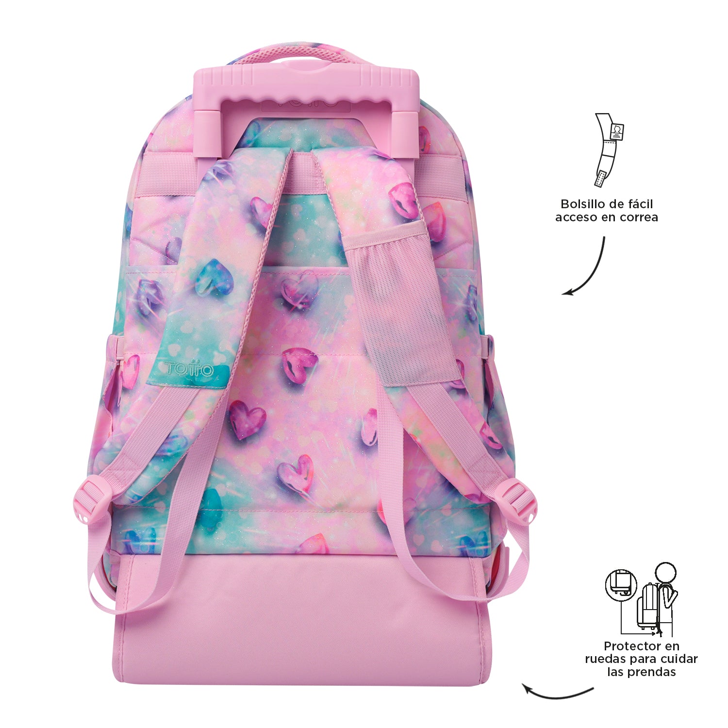 A mochila Renglones é ideal para crianças em idade escolar que precisam de um lugar confortável para carregar livros e materiais, graças ao seu design com rodas e carrinho. Este modelo grande, feito de lona RPET feita de garrafas plásticas recicladas, combina funcionalidade com uma abordagem ecológica. Ele oferece um compartimento para PC de 15,4 polegadas, um organizador com porta-chaves, dois bolsos para garrafa de água e rodas de borracha resistentes com amortecedores de proteção. Inclui uma alça telescópica, protetor de alça e rodas para evitar que as roupas fiquem sujas quando usadas nas costas. Disponível em uma ampla variedade de estampas para atender ao gosto dos pequenos. Uma escolha prática e ecologicamente correta!
